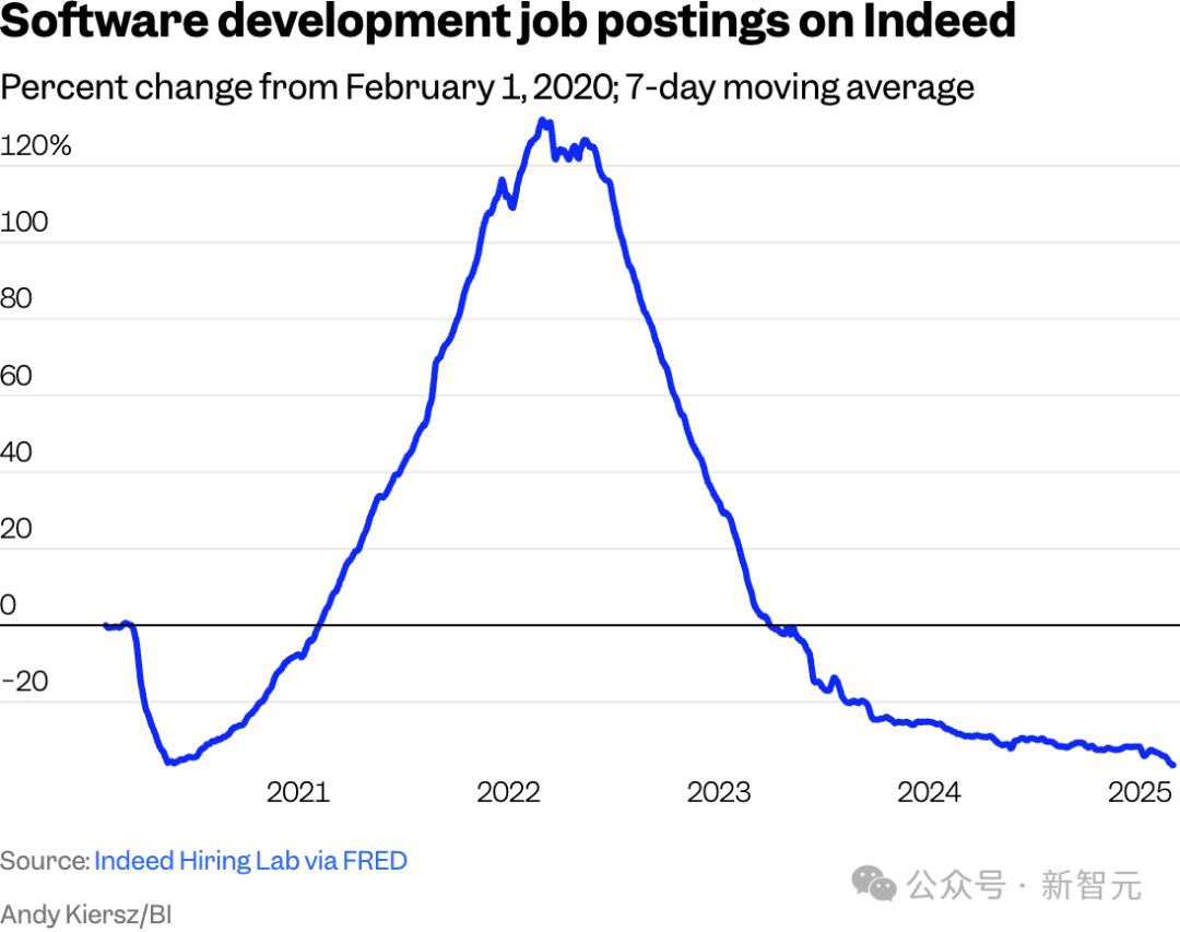 【新智元导读】软件工程师需求,美国已降至五年来最低;与此同时,AI 相关岗位招聘需求大幅增长,各行各业疯抢 AI 人才。程序员相关岗位大幅减少,失业恐慌正悄然蔓延。AI 时代,程序员转型势在必行!