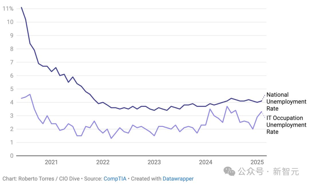 尽管 AI 相关招聘需求大幅增长,但 IT 领域的失业率在 2 月仍然上升。