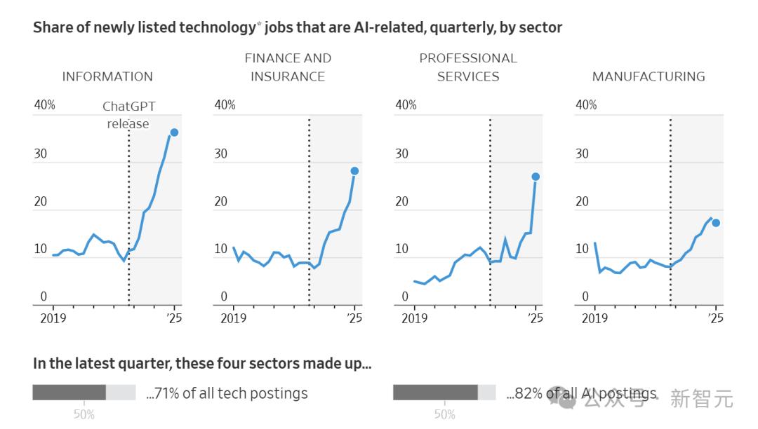 即使在传统行业里,新开放的技术岗位也越来越侧重于 AI。
