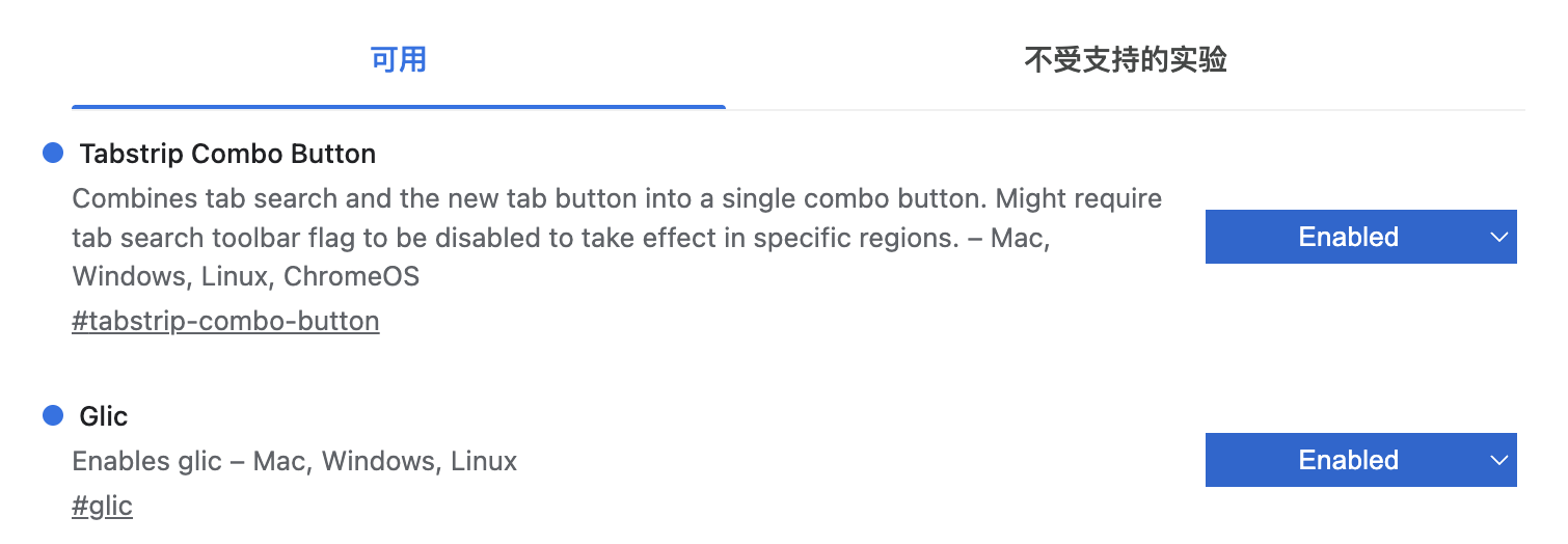 原博主在 Glic 总开关打开之后,还打开了另两个特效开关。那两个开关打开之后,会在当前页面四周画一个闪烁的蓝框,就像 AI 在思考。我受不了,马上关掉。