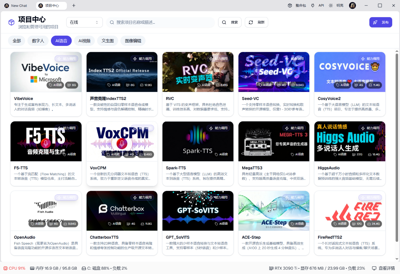 此外还旧版《AI 商店》还收录了更多 AI 语音项目 (总计 25+) 包含声音克隆、AI 翻唱、实时变声等,大家可以进入整合包下载地址,自行下载。