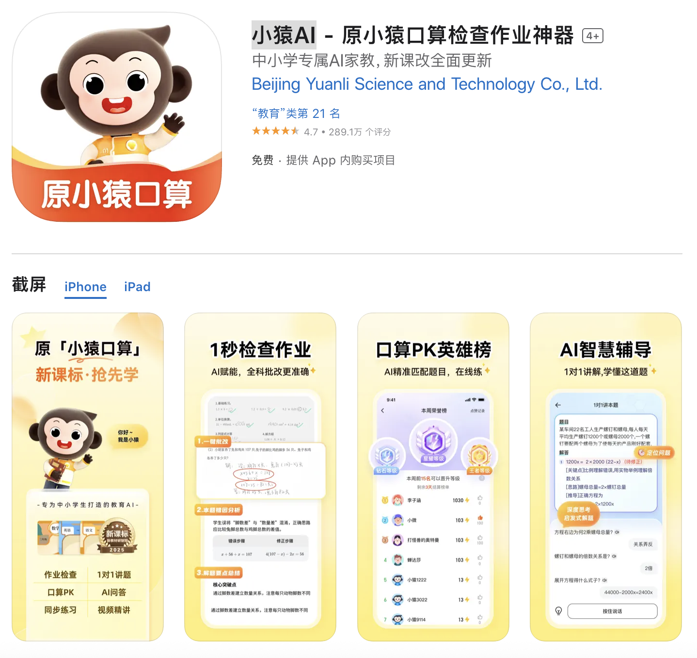 小猿口算从“拍题判错”起家,如今已经变成一个覆盖作业批改、题型讲解、教材同步练练和情感陪伴的全能学习助手。最大价值是把家长从“反复检查作业”中解放出来,也让孩子的练习反馈从“对错”变成“错因分析”。它通过 AI 拆题讲解、个性练习推送、教材同步和心理小卫士等机制,把冷冰冰的“工具”变成有温度的“学习伙伴”。家长愿意付费,学生愿意留在平台,就是因为它把“陪伴”变成了真正有用的东西。