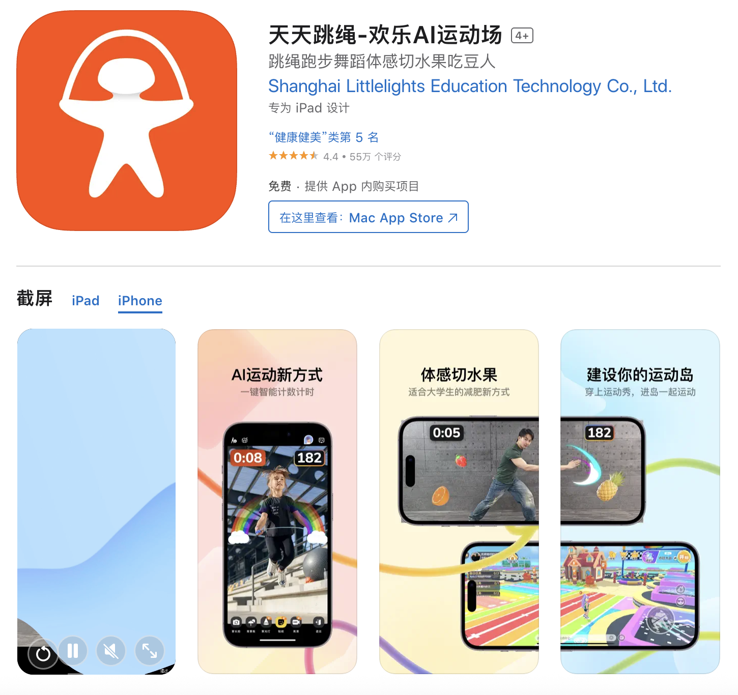 天天跳绳并不止做“跳绳”这一件事,它其实是一个“动作识别 + 趣味运动”的 AI 体感平台。只需要一部手机,它就能识别你的挥臂、步伐、躯干移动等动作,让你在家玩切水果、跳舞、打羽毛球、做 HIIT 燃脂,还能和朋友 PK、组队打卡、生成 AR 运动视频。对不爱去健身房的人、亲子家庭、或想打破“运动焦虑”的人来说,这是一种低门槛的替代方案。从“我不想运动”到“这个游戏挺好玩”,路径就是这么短。