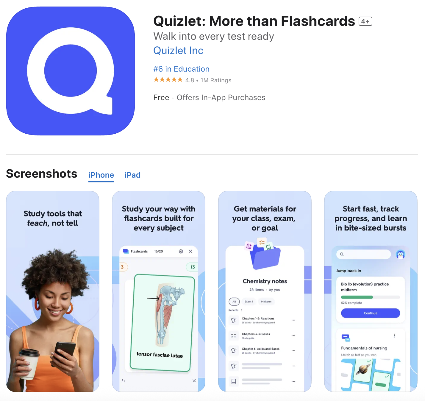 Quizlet 的定位是全球学生的“AI 背诵神器”——它把笔记转成记忆卡片,再变成练习题和测试题,还能根据遗忘曲线自动安排复习计划。配合社区千万级的共享笔记、支持各种考试科目,以及适配教师的课堂互动模块,Quizlet 已经成为很多学校默认的教学补充工具。它不是靠“大模型有多聪明”取胜,而是靠把 AI 能力嵌进“整理—练习—复习”全流程,真正帮助学生“学得会、记得住”。