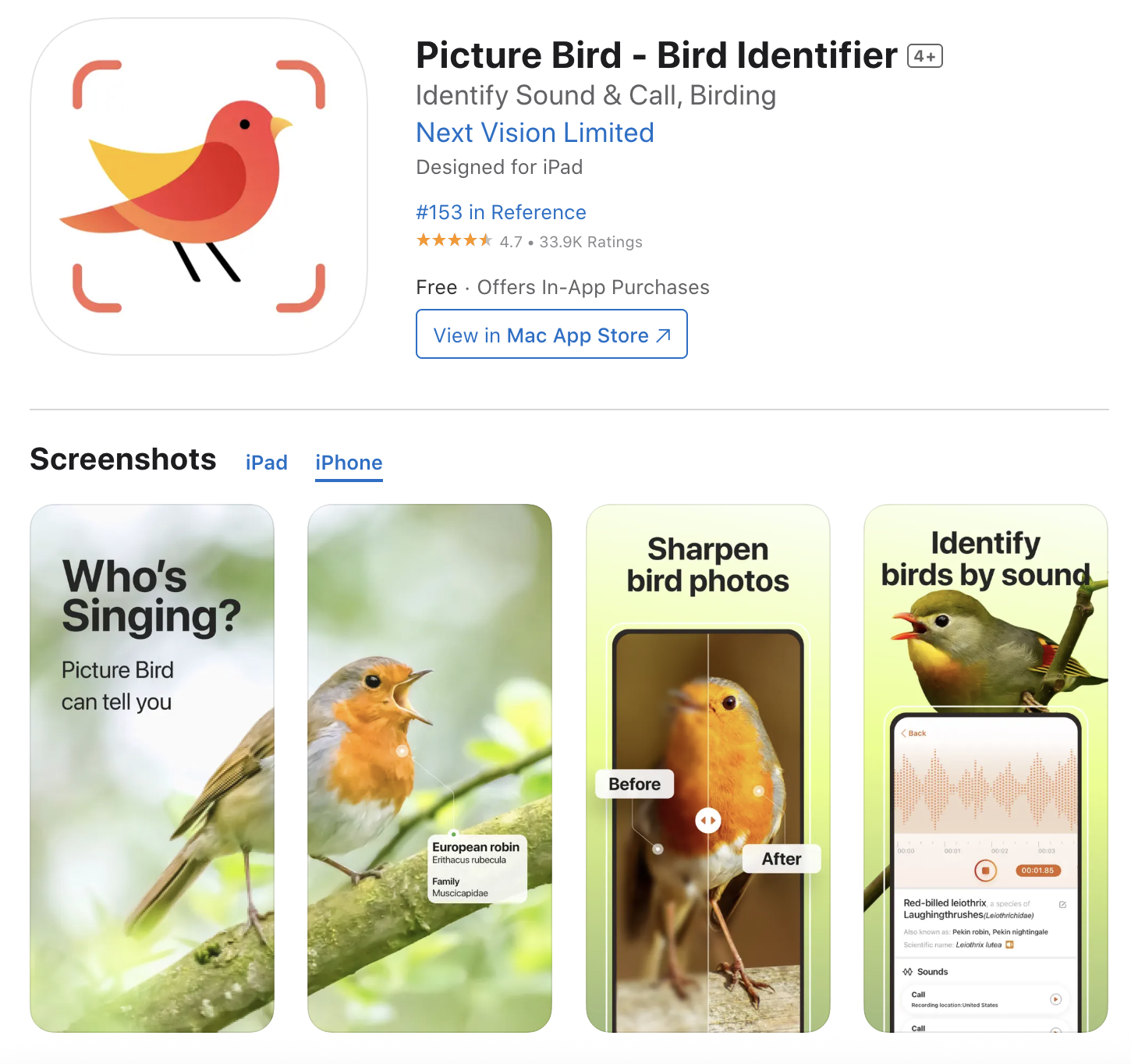 Picture Bird 是一个鸟类识别工具,只要拍一张鸟的照片或录一段鸣叫,它就能识别种类并附带百科信息。它不止识别,还提供拍摄优化、观察记录、鸟卡管理和喂养建议,把“看鸟—识别—了解—记录”做成完整闭环。对于亲子家庭、后院爱好者和自然科普人群,它是一个兼具趣味性与科普性的入口。这类产品说明:AI 不需要每次都“解决大问题”,只要解决一个“足够多用户经常会遇到的小问题”,就能找到细分增量市场。